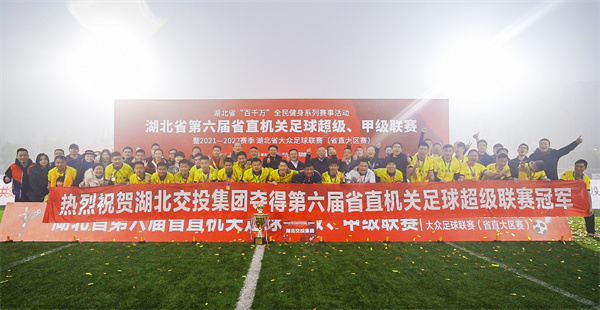 寒風(fēng)不擋健兒姿,綠茵場(chǎng)上風(fēng)采揚。12月11日下午,湖北省第六屆省直機關(guān)足球超級聯(lián)賽決賽在漢舉行。經(jīng)過(guò)激烈的點(diǎn)球大戰,湖北交投集團足球隊以5:4的比分戰勝湖北省體育局足球隊,繼去年奪得湖北省第五屆省直機關(guān)足球甲級聯(lián)賽冠軍后,再攀高峰、勇奪桂冠。