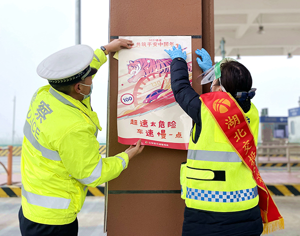 江漢運營(yíng)公司江陵收費站配合交警部門(mén)在收費廣場(chǎng)做好春運期間安全宣傳工作