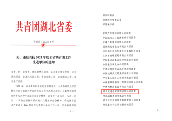 近日,省總工會(huì )、團省委分別通報表彰湖北五一勞動(dòng)獎狀、湖北省女職工建功立業(yè)標兵崗、全省共青團工作先進(jìn)單位等,湖北交投集團團委榮獲“全省共青團工作先進(jìn)單位”,建設集團榮獲“湖北五一勞動(dòng)獎狀”,長(cháng)江路橋公司孝漢應高速公路福銀高速至武荊高速段項目部榮獲“湖北省工人先鋒號”,襄陽(yáng)運營(yíng)公司襄陽(yáng)北管理所、江漢運營(yíng)公司白螺管理所女子監控班榮獲“湖北省女職工建功立業(yè)標兵崗”。