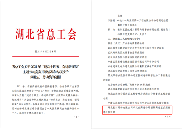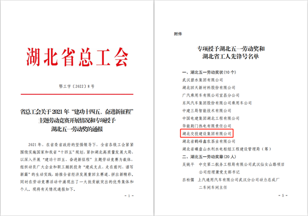 湖北交投建設集團榮獲“湖北五一勞動(dòng)獎狀”