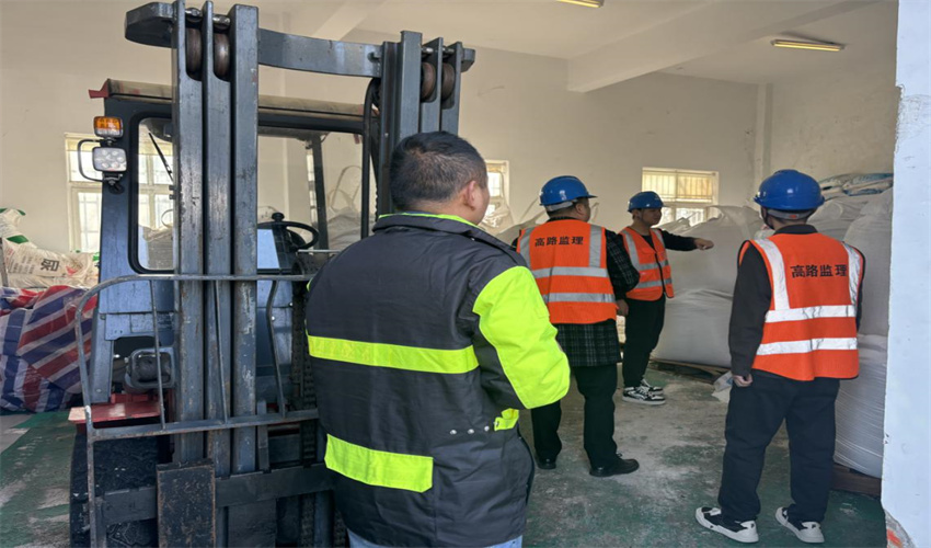 2月19日,楚天養護總監辦三監理組枝江段檢查新到融雪劑過(guò)磅