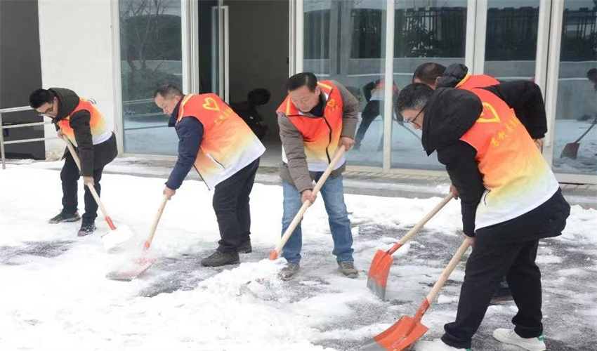 高路監理黨支部全體黨員干部、入黨積極分子及公司本部青年職工不畏嚴寒、聞雪而動(dòng),化身志愿者來(lái)到公司所在漢沙社區鏟除路面積雪,為社區居民和公司員工安全出行提供有力保障。面對極寒惡劣的天氣,志愿者們洋溢著(zhù)如火熱情。他們不畏嚴寒、躬著(zhù)身子,鏟的鏟、推的推、掃的掃,忙碌的身影形成了一道靚麗的風(fēng)景線(xiàn)。在大家的齊心合作下,腳下被白雪冰封的道路變得逐漸清晰可行。暖心的行動(dòng)切實(shí)弘揚著(zhù)“奉獻、友愛(ài)、互助、進(jìn)步”的志愿精神,贏(yíng)得社區居民紛紛點(diǎn)贊。