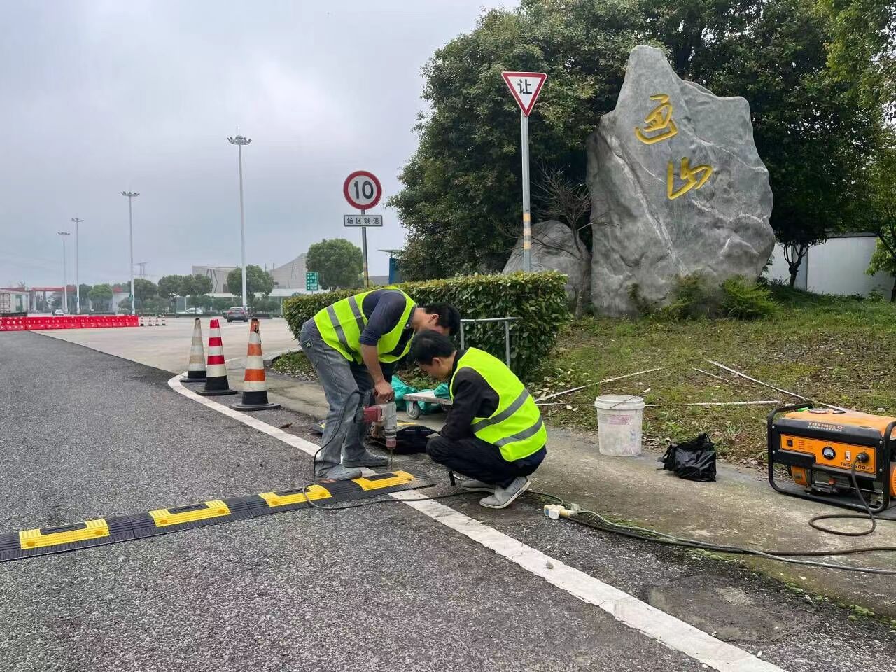 ▲實(shí)業(yè)公司修復服務(wù)區交安設施