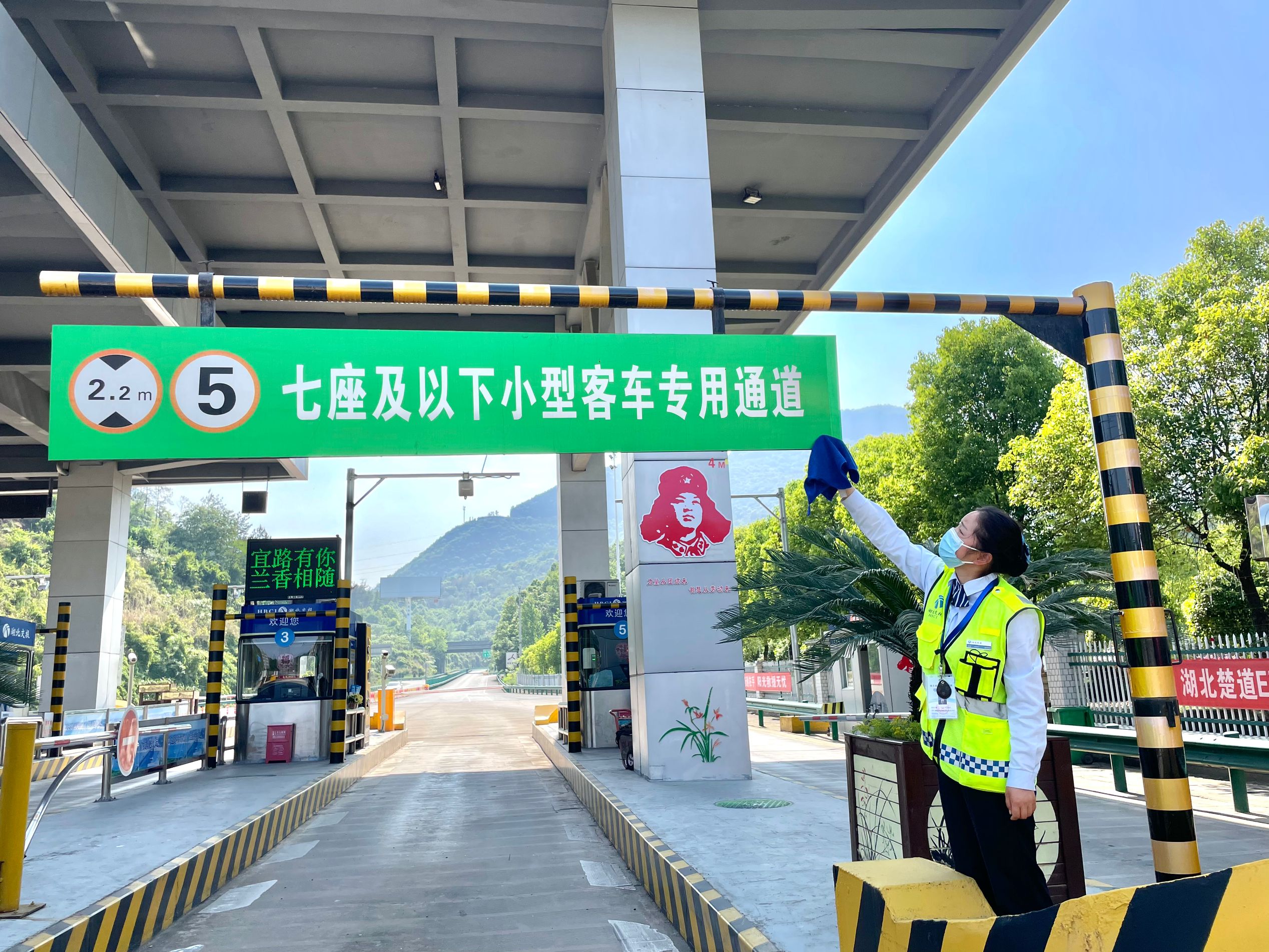 ▲宜昌運營(yíng)公司提前布置收費現場(chǎng)免費車(chē)道限高門(mén)架