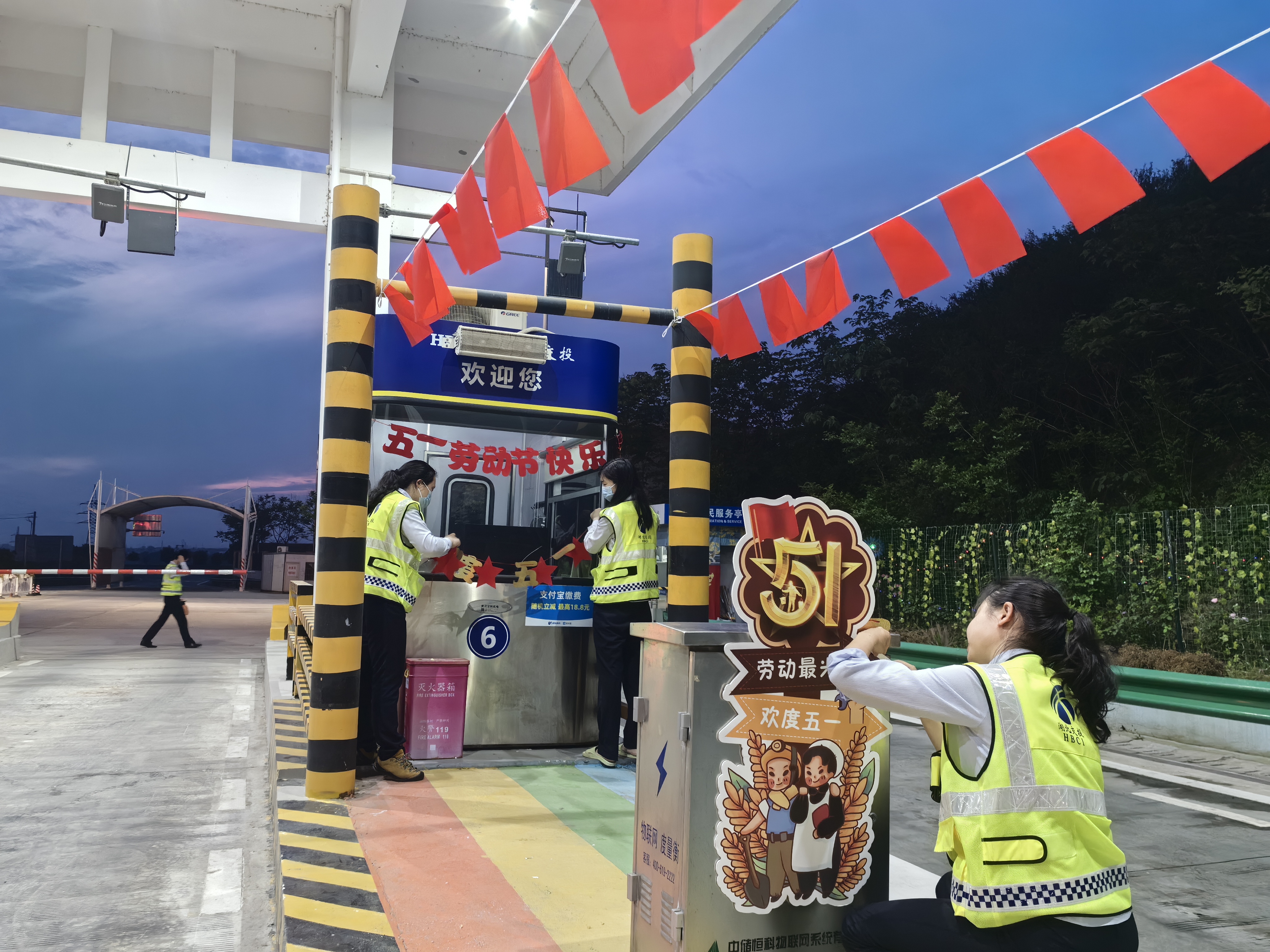 ▲隨岳運營(yíng)公司節前精心布置收費現場(chǎng),營(yíng)造濃厚節日氛圍
