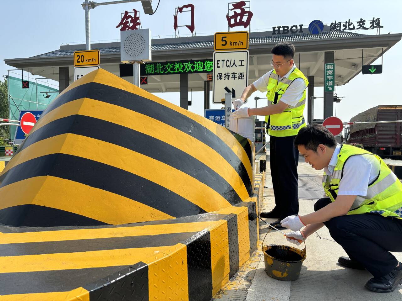 ▲鄂東運營(yíng)公司對安全島油漆進(jìn)行修復