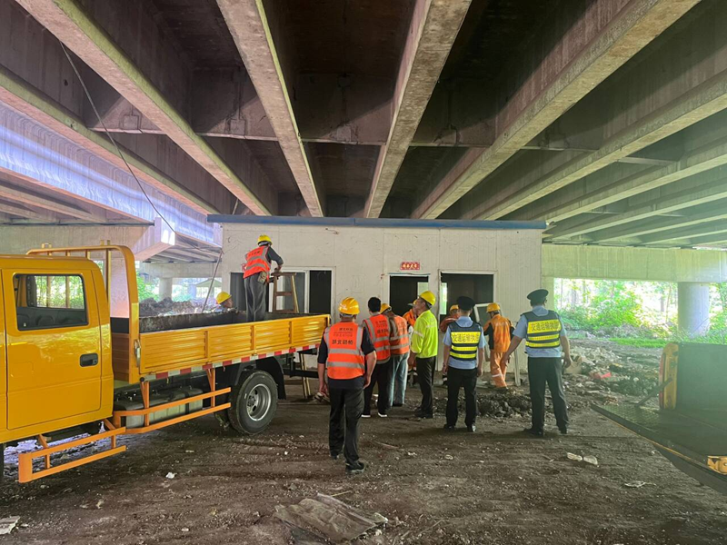此處橋下空間違法設施為當地村民臨時(shí)搭建,設施結構為巖棉板臨時(shí)活動(dòng)板房。路政處一大隊在巡查中發(fā)現此違建設施后立即開(kāi)展調查。通過(guò)路政人員的多次上門(mén)宣傳和講解,當事人意識到自己違法行為的危害性,并承諾按照相關(guān)法律法規要求配合路政部門(mén)進(jìn)行拆除。