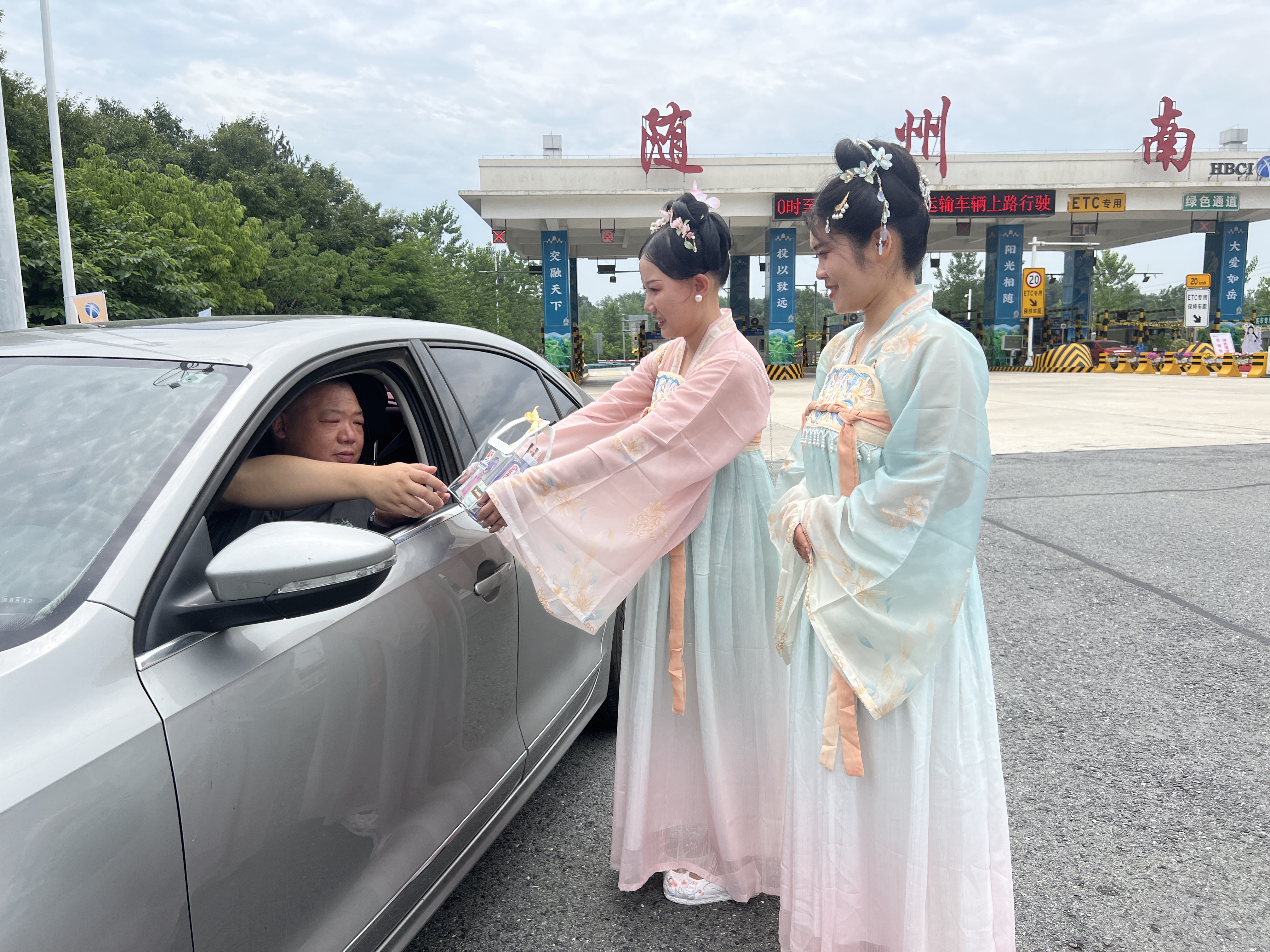 “這里的炎帝打卡牌還有滿(mǎn)地麥穗,簡(jiǎn)直太有炎帝農耕文化啦,一進(jìn)收費站,就感受到了'尋根節'氣息!”外地游客肖先生不禁感嘆道。不止肖先生,很多途徑隨州南收費站的外地游客也紛紛表示,這里滿(mǎn)滿(mǎn)的隨州地域文化元素,讓人眼前一亮。隨州南管理所作為快捷進(jìn)入炎帝神農故里的南大門(mén),承襲“炎帝故里、神韻隨州”地域精髓,不斷探索“交旅融合”發(fā)展新模式,充分發(fā)揮駐地第一景作用,積極推進(jìn)交通與文化旅游深度融合,全力以赴服務(wù)公眾美好出行。在收費廣場(chǎng),設立了尋根節便民服務(wù)臺、貴賓接待點(diǎn)和打卡點(diǎn),為過(guò)往司乘提供免費的行車(chē)指南、飲用水、清涼包以及路線(xiàn)咨詢(xún)服務(wù)?!疤?yáng)花”志愿者身著(zhù)漢服,使用尋根節服務(wù)文明用語(yǔ),化身世界華人炎帝故里尋根節“推介官”,用甜美的微笑和規范的手勢服務(wù)尋根節,將嘉賓車(chē)隊引入專(zhuān)道優(yōu)先快速通行。