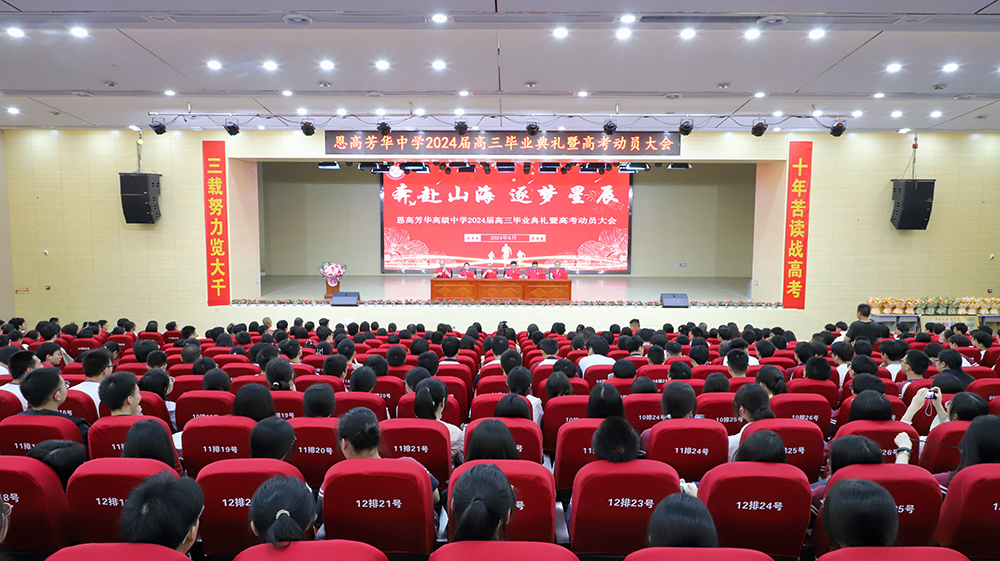 6月3日,鄂西新鎮公司恩高芳華中學(xué)2024屆高三畢業(yè)典禮暨高考動(dòng)員大會(huì )在學(xué)校報告廳舉行。恩高芳華中學(xué)全體校領(lǐng)導班子成員,高三年級全體老師,軍事教官、保安、寢室管理員、食堂工作人員、保潔員和行后代表一同見(jiàn)證2024屆高三學(xué)子圓滿(mǎn)完成高中學(xué)業(yè)。