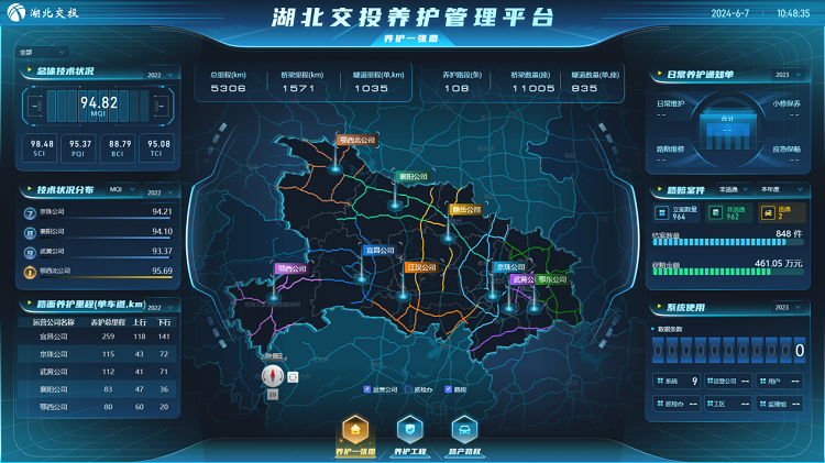 同時(shí),平臺已完成集團5035公里高速公路路面、11005座橋梁、835座(單洞)隧道的資產(chǎn)數字化。有力推動(dòng)了湖北公路進(jìn)入“數據標準統一、資產(chǎn)數據完整、技術(shù)狀況可視、風(fēng)險預警可控、養護決策科學(xué)、養護實(shí)施精準”的集約化數智管養管理時(shí)代。