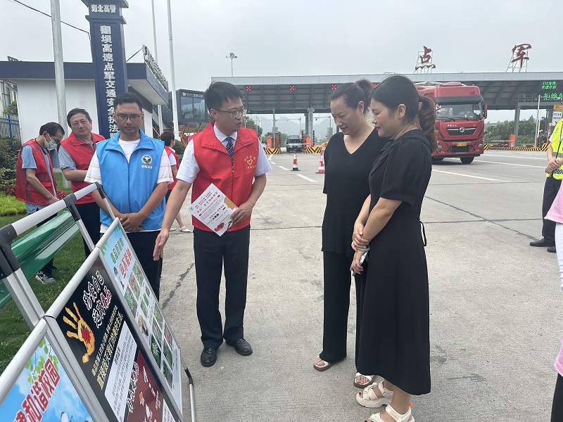為進(jìn)一步普及禁毒知識,營(yíng)造全民禁毒的良好氛圍,在第37個(gè)國際禁毒日到來(lái)之際,6月25日,宜昌運營(yíng)公司聯(lián)合宜昌市點(diǎn)軍區聯(lián)棚鄉政府、聯(lián)棚司法局、聯(lián)棚派出所等單位,在點(diǎn)軍收費站舉行“6.26”國際禁毒日主題宣傳活動(dòng),以線(xiàn)上線(xiàn)下相結合、新穎有趣的互動(dòng)形式,讓禁毒知識深入人心。