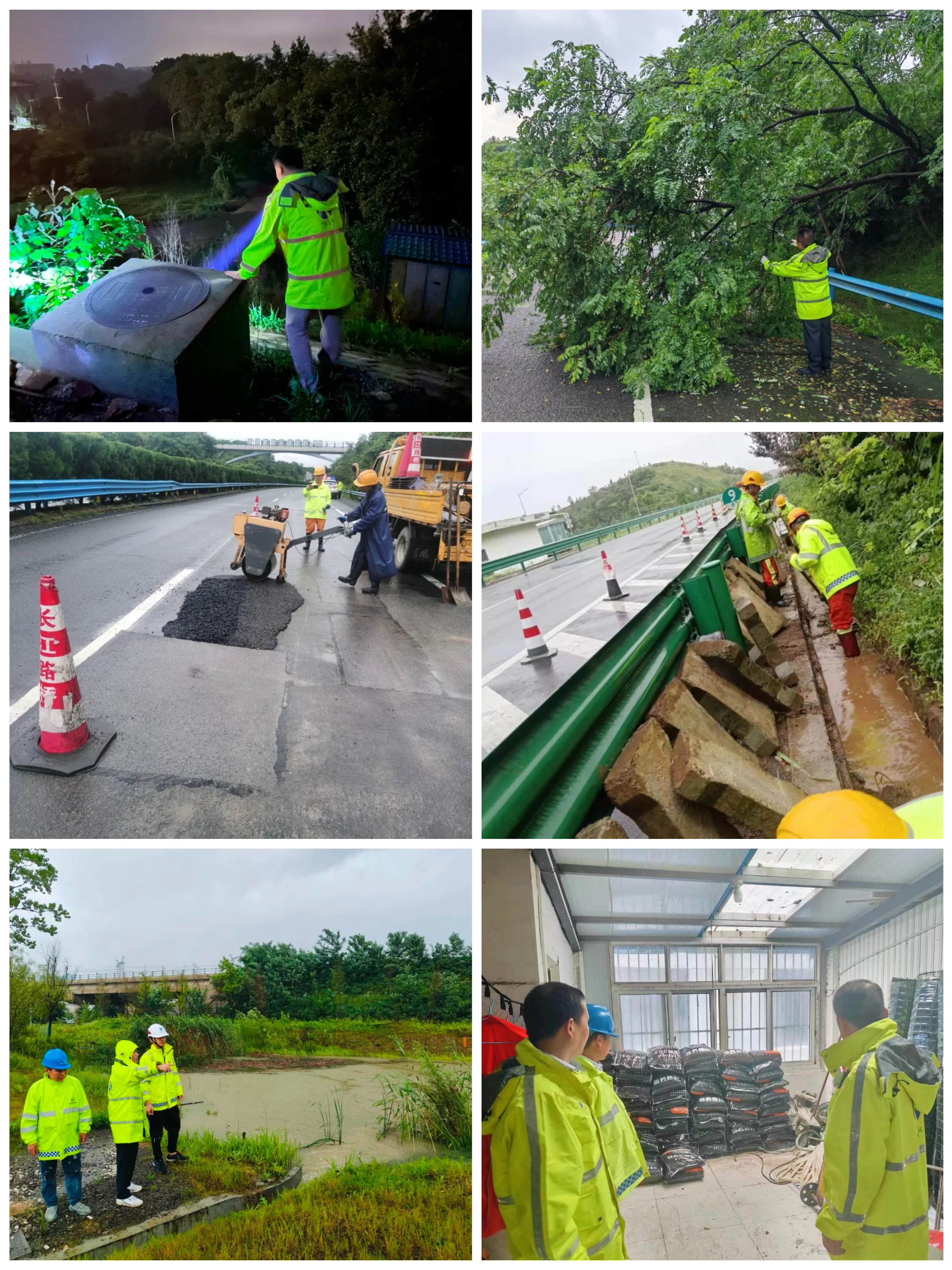第一綜合巡檢辦針對武黃改擴建以來(lái)管段被“一分為二”首尾不接點(diǎn)多面廣的特點(diǎn),不間斷加大巡查和隱患排查力度,對排水溝、橋梁排水設施進(jìn)行動(dòng)態(tài)監測,提前疏通橋梁泄水孔,消除安全隱患。第二綜合巡檢辦第一時(shí)間調派應急車(chē)輛人員對沿線(xiàn)倒伏樹(shù)木進(jìn)行砍伐,對路面坑槽進(jìn)行應急冷補,對積水位置進(jìn)行排水引流措施。第三綜合巡檢辦加大坑槽冷補力度,累計完成冷補坑槽210余處。第四綜合巡檢辦對積水嚴重的涵洞等區域,采取抽排作業(yè)等措施,確保車(chē)輛能夠正常通行。第五綜合巡檢辦以路警企聯(lián)勤聯(lián)動(dòng)機制為抓手,對轄區路段不間斷巡查,督促施工單位及時(shí)整改。各相鄰收費站建立聯(lián)勤聯(lián)動(dòng)機制,各黨總支組建黨員防汛突擊隊,密切協(xié)作,相互補援,切實(shí)發(fā)揮區域聯(lián)動(dòng)、信息聯(lián)通優(yōu)勢應對惡劣天氣。截至6月30日,應對本輪強降雨惡劣天氣出動(dòng)應急人員425人次、車(chē)輛140臺次,動(dòng)用大型機具9臺班,消耗砂石料10方,沙袋250袋,巡查里程達到993公里,未發(fā)生事故險情。