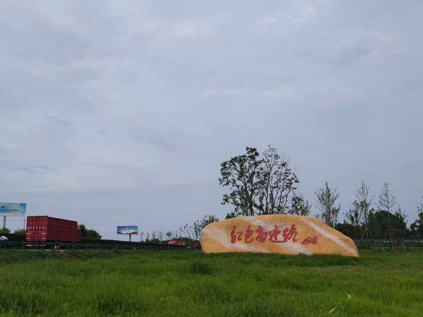 麻武高速紅安互通,是外界連通革命老區紅安縣的門(mén)戶(hù)。放眼望去,1600平方米播種了格?;?、金雞菊、波斯菊、美麗月見(jiàn)草等四季開(kāi)花植物的未來(lái)花圃取代了原先單色的植被,37000余平方米的裸露地塊種植了草坪,披上了綠色外衣,銀杏、紅楓、夾竹桃等360余株各類(lèi)景觀(guān)樹(shù)木點(diǎn)綴其間層次分明,900平方米的景觀(guān)水池碧波蕩漾,景觀(guān)石上,“紅色高速路”字體蒼勁有力。