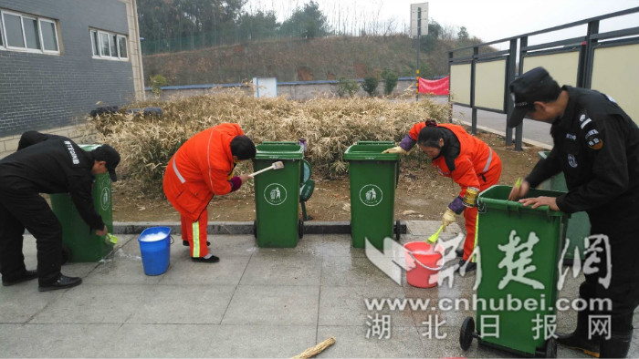 保潔清理前一晚堆積已滿(mǎn)的垃圾桶