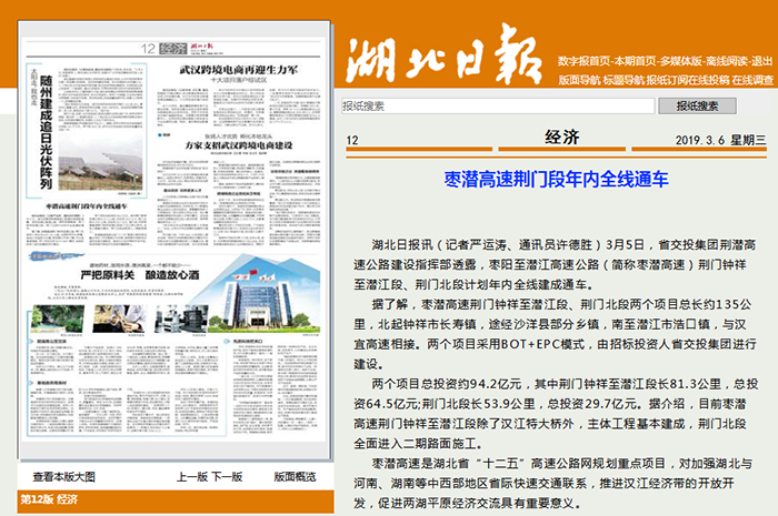 3月5日,省交投集團荊潛高速公路建設指揮部透露,棗陽(yáng)至潛江高速公路(簡(jiǎn)稱(chēng)棗潛高速)荊門(mén)鐘祥至潛江段、荊門(mén)北段計劃年內全線(xiàn)建成通車(chē)。