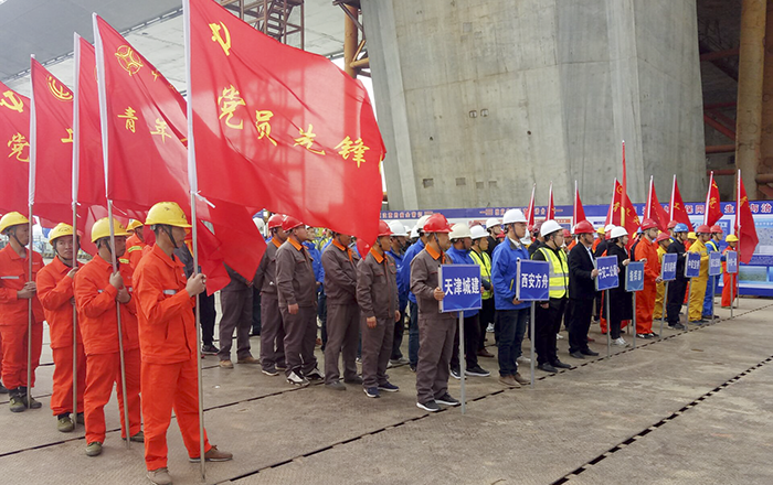 會(huì )議還向“青年突擊隊”代表單位授旗,參建單位發(fā)出“攻堅杯”勞動(dòng)競賽倡議,并作勞動(dòng)競賽發(fā)言。