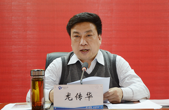 湖北交投黨委書(shū)記、董事長(cháng)、總經(jīng)理龍傳華作報告