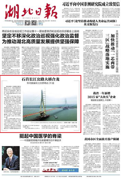 目前,我省已通車(chē)長(cháng)江大橋26座,在建長(cháng)江大橋11座,石首長(cháng)江大橋是在建大橋中合龍的第4座。今年內,預計石首長(cháng)江大橋、香溪長(cháng)江大橋、公安長(cháng)江大橋、嘉魚(yú)長(cháng)江大橋、楊泗港長(cháng)江大橋等5橋建成通車(chē)。