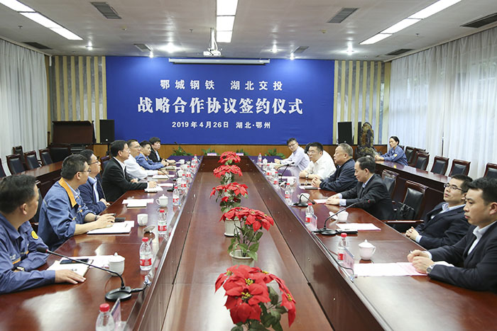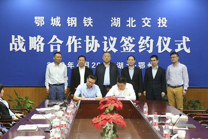 4月26日下午,湖北交投物流集團有限公司與中國寶武武漢鋼鐵集團鄂城鋼鐵有限責任公司簽訂戰略合作協(xié)議。雙方將在鋼材直供、網(wǎng)絡(luò )貨運平臺、大宗物資供應、材料研發(fā)、投資等方面開(kāi)展全方位合作。鄂州市政府副市長(cháng)、黨組成員岳勁,湖北交投黨委委員、副總經(jīng)理羅澤華,鄂鋼公司黨委副書(shū)記、總裁賴(lài)曉敏出席儀式。