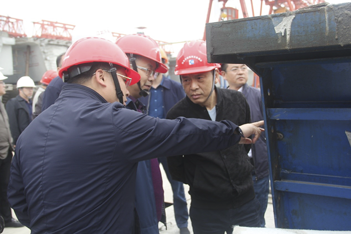 張世飚沿主線(xiàn)便道察看了江北東全線(xiàn)施工情況,詳細了解了項目“兩區兩場(chǎng)一站”、工業(yè)化橋梁裝配式預制廠(chǎng)、鋼混梁疊拼場(chǎng)建設情況。