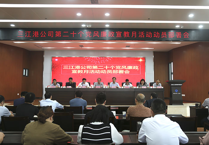 5月17日,三江港公司召開(kāi)了第二十個(gè)黨風(fēng)廉政建設宣傳教育月活動(dòng)動(dòng)員部署會(huì )。湖北交投工會(huì )主席譚慧農出席會(huì )議。