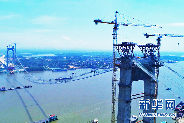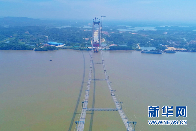 湖北省交通投資集團有限公司投資建設的湖北棋盤(pán)洲長(cháng)江公路大橋近日完成貓道鋪設。