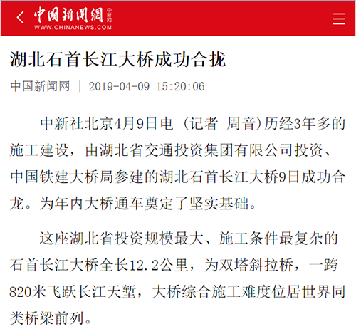 4月9日,歷經(jīng)3年多的施工建設,由湖北省交通投資集團有限公司投資、中國鐵建大橋局參建的湖北石首長(cháng)江大橋9日成功合龍。為年內大橋通車(chē)奠定了堅實(shí)基礎。