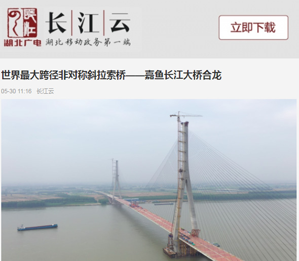 今天(30號)上午,隨著(zhù)最后一段鋼箱梁順利完成焊接,由湖北交投集團投資建設的世界最大跨徑非對稱(chēng)斜拉索橋——嘉魚(yú)長(cháng)江大橋合龍。