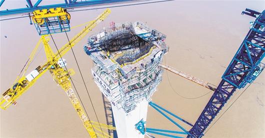工藝創(chuàng )新大大提升了鉆孔效率,改進(jìn)后的成孔工藝,單樁成孔周期只需13天,比過(guò)去縮短了三分之二。2016年6月18日,隨著(zhù)最后一根樁基順利完工,宣告大橋主塔87根樁基在汛期來(lái)臨前夕全部完成,大橋基礎成功經(jīng)受住了當年長(cháng)江特大洪水的考驗?!跋襁@樣的工程難點(diǎn)還有很多,我們一一實(shí)現了突破?!苯煌断嚓P(guān)人士介紹,大橋合龍設計為北半跨主梁不動(dòng)、南半跨主梁頂推的合龍模式,精度要求非常高。為此,建設單位聯(lián)合設計、廠(chǎng)家,將傳統阻尼器和液壓伺服千斤頂合二為一,研發(fā)出了一種具有頂推、限位、減震功能的復合式阻尼器安裝于南塔處,在保證大橋抗震性能的前提下,克服了溫度影響,通過(guò)頂推施工實(shí)現了主橋全天候、數字化、零誤差合龍,這種新型合龍方式為斜拉索橋數控合龍提供了寶貴經(jīng)驗。
