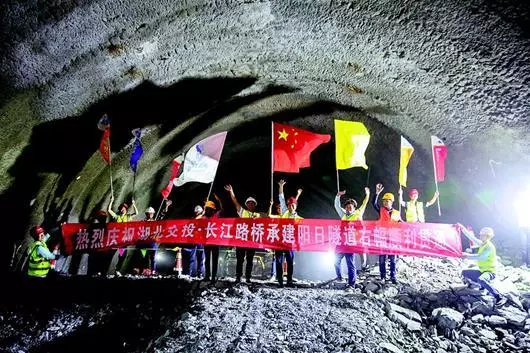 圖為:5月30日,保(康)神(農架)高速公路控制性工程陽(yáng)日隧道貫通。