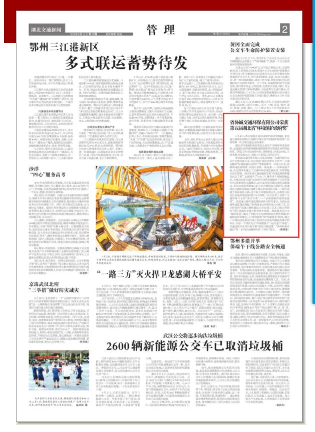 6月4日,第五屆湖北省環(huán)境保護政府獎揭曉,省協(xié)誠交通環(huán)保有限公司被授予湖北省“環(huán)境保護政府獎”,此獎項第一次出現交通企業(yè)的身影。