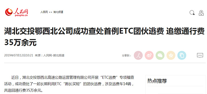 ETC“尾隨”逃掉數萬(wàn)元。ETC車(chē)道超時(shí)不易發(fā)現,部分小客車(chē)利用這一漏洞在鄂西北公司所轄G4213麻(城)安(康)高速公路宜城周邊收費站上站,到武漢周邊收費站通過(guò)ETC車(chē)道跟車(chē)沖崗上下站,又從距離上高速較近的收費站口正常下站。鎖定嫌疑車(chē)輛后,公司對襄隨段收費站互通攝像頭的監控錄像進(jìn)行調取核查,發(fā)現這14輛車(chē)的實(shí)際行駛軌跡與系統記錄軌跡完全不符,明顯存在偷逃通行費行為。掌握車(chē)輛逃費證據后,公司成立專(zhuān)班進(jìn)行全面布控,5月30日14點(diǎn)50分,一輛嫌疑車(chē)在平林收費站被成功攔截?;閷?zhuān)班現場(chǎng)詢(xún)問(wèn)了嫌疑車(chē)輛行駛軌跡,并向其講清了逃費行為的利害關(guān)系,在確鑿的證據面前,司機對自己的逃費行為供認不諱。原來(lái),該車(chē)一直從事宜城至武漢的“網(wǎng)約車(chē)”服務(wù),每次載客從宜城周邊收費站ETC正常上站,到武漢周邊收費站時(shí)通過(guò)ETC車(chē)道“尾隨”跟車(chē)沖崗下站,從武漢上站時(shí)再次沖崗上高速到宜城附近收費站下站。至去年8月份以來(lái),車(chē)主利用上述手段共逃費150余次,涉及金額29366元,當晚該車(chē)補繳了全部逃繳通行費。另?yè)緳C交代,類(lèi)似從事逃費行為的車(chē)輛一共十多輛,司機組建逃費信息交流群,在群內進(jìn)行“技術(shù)”交流和信息共享。