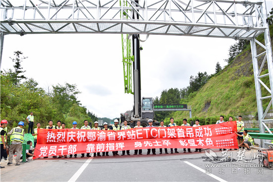 湖北交投首座省界站ETC門(mén)架在利萬(wàn)高速鄂渝站吊裝成功。