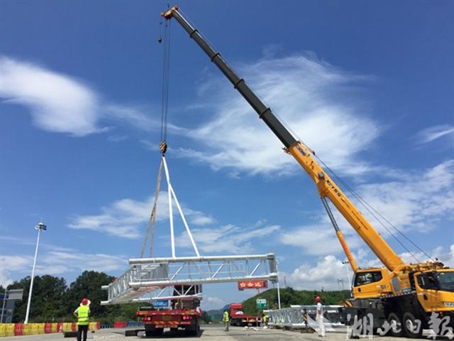 7月27日,麻安高速鄂陜省界關(guān)埡子收費站附近路面溫度最高達50多攝氏度,隨著(zhù)重達數十噸的ETC門(mén)架吊裝到位,省交投集團鄂西北片區兩個(gè)省界ETC門(mén)架已全部安裝到位。