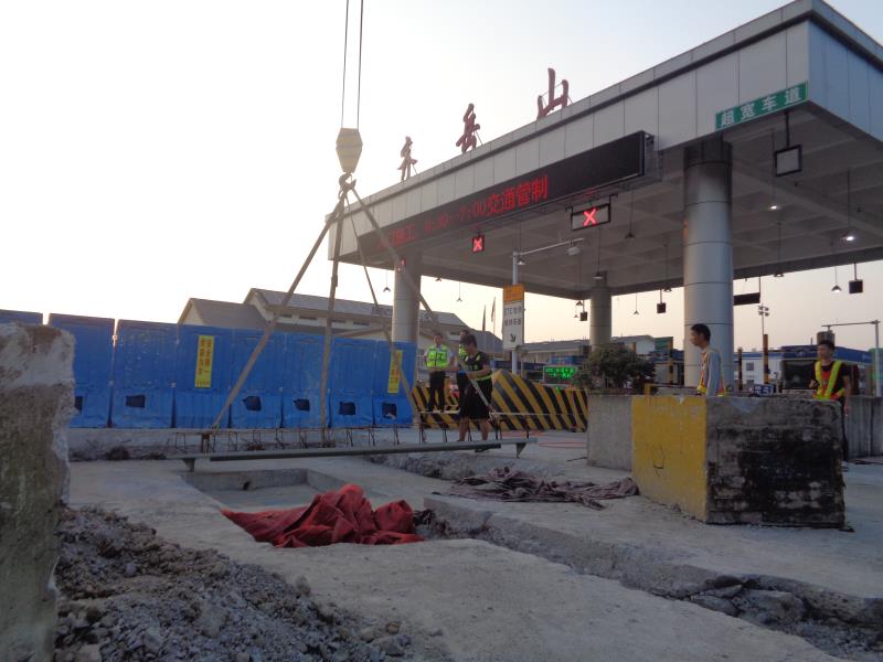 鄂西片區稱(chēng)臺吊裝采用的是墊層澆筑、基礎澆筑、降坡澆筑的“三次澆筑法”,相比于其它地區的2次澆筑,3次澆筑對山區高速的入口降坡處理更為有效。同時(shí),由于鄂西山區高速超長(cháng)超大貨車(chē)較多、且恩施地區旅游旺季車(chē)流大,故鄂西片區還采用了“隔站”施工的方法,即相鄰兩個(gè)站的入口超寬車(chē)道一個(gè)封閉施工、一個(gè)正常通行,以便于大型貨車(chē)和旅游車(chē)輛只需繞行較短距離的普通公路,便可再正常通行高速公路。