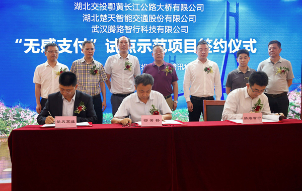 6月28日下午,楚天公司、鄂黃橋公司及武漢騰路公司簽訂了高速公路“無(wú)感支付”試點(diǎn)示范項目合作協(xié)議,這意味著(zhù)省內第一個(gè)“無(wú)感支付”試點(diǎn)將在黃岡市鄂黃長(cháng)江公路大橋正式上線(xiàn)。