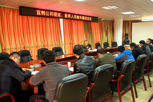1月21日,為進(jìn)一步增強新任職管理人員的廉潔從業(yè)意識,進(jìn)一步筑牢思想道德防線(xiàn)和培養不想腐的自覺(jué),宣鶴公司召開(kāi)新任職中層管理人員集體廉潔座談會(huì ),對6名職級提拔、2名提拔重用和3名調入任職人員進(jìn)行集體廉潔談話(huà)。