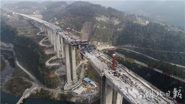 11月29日,建設者在建恩高速公路找龍壩大橋施工