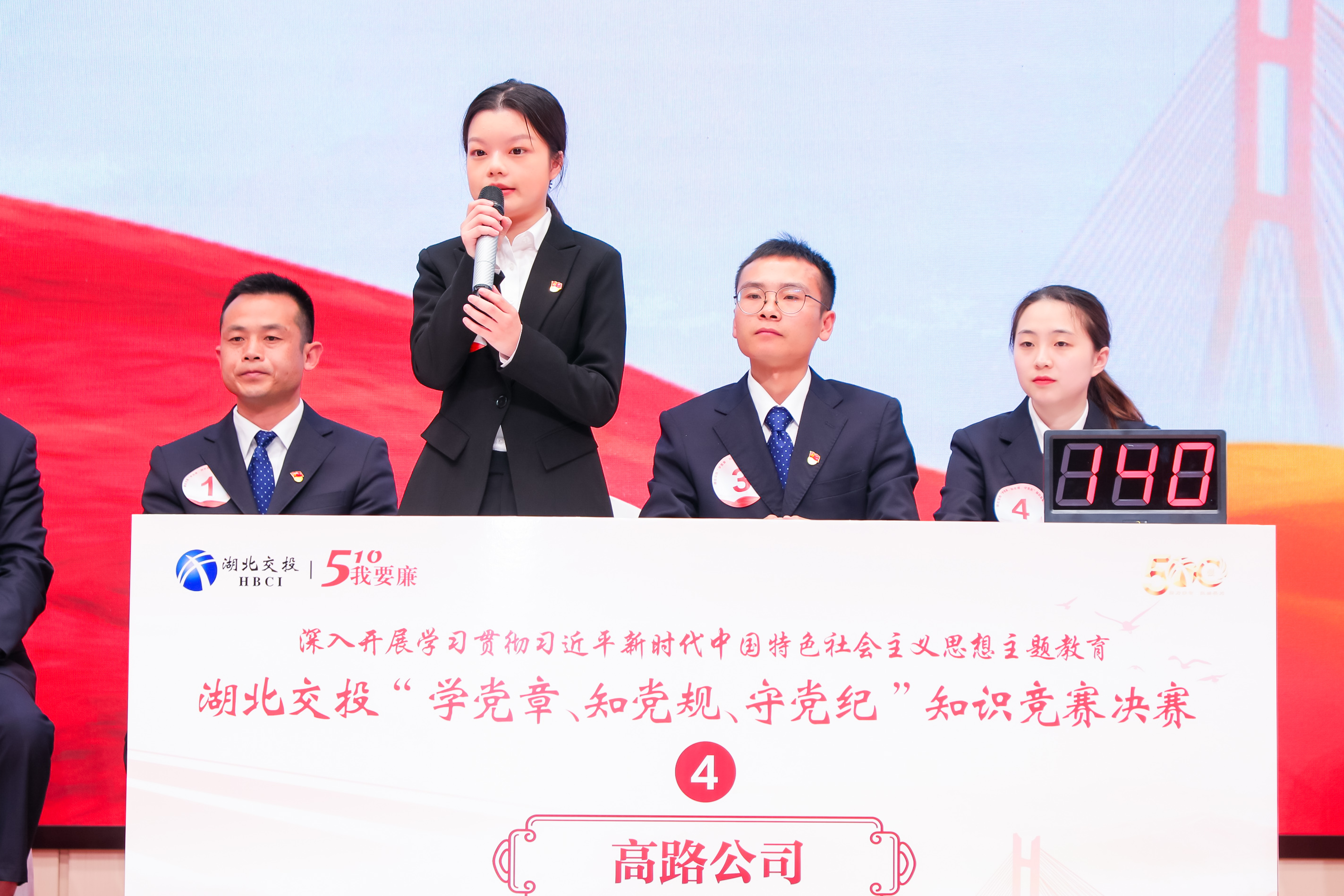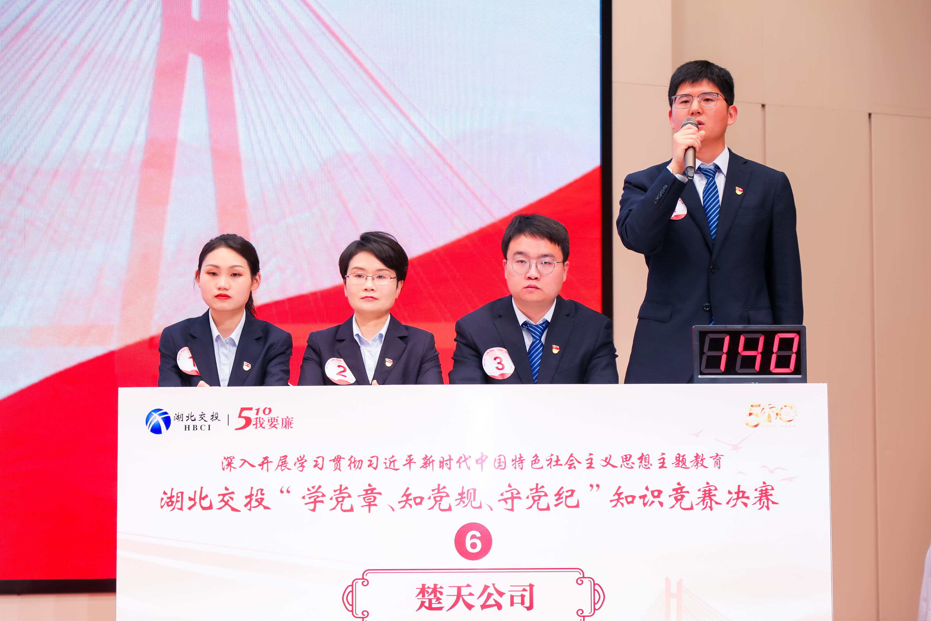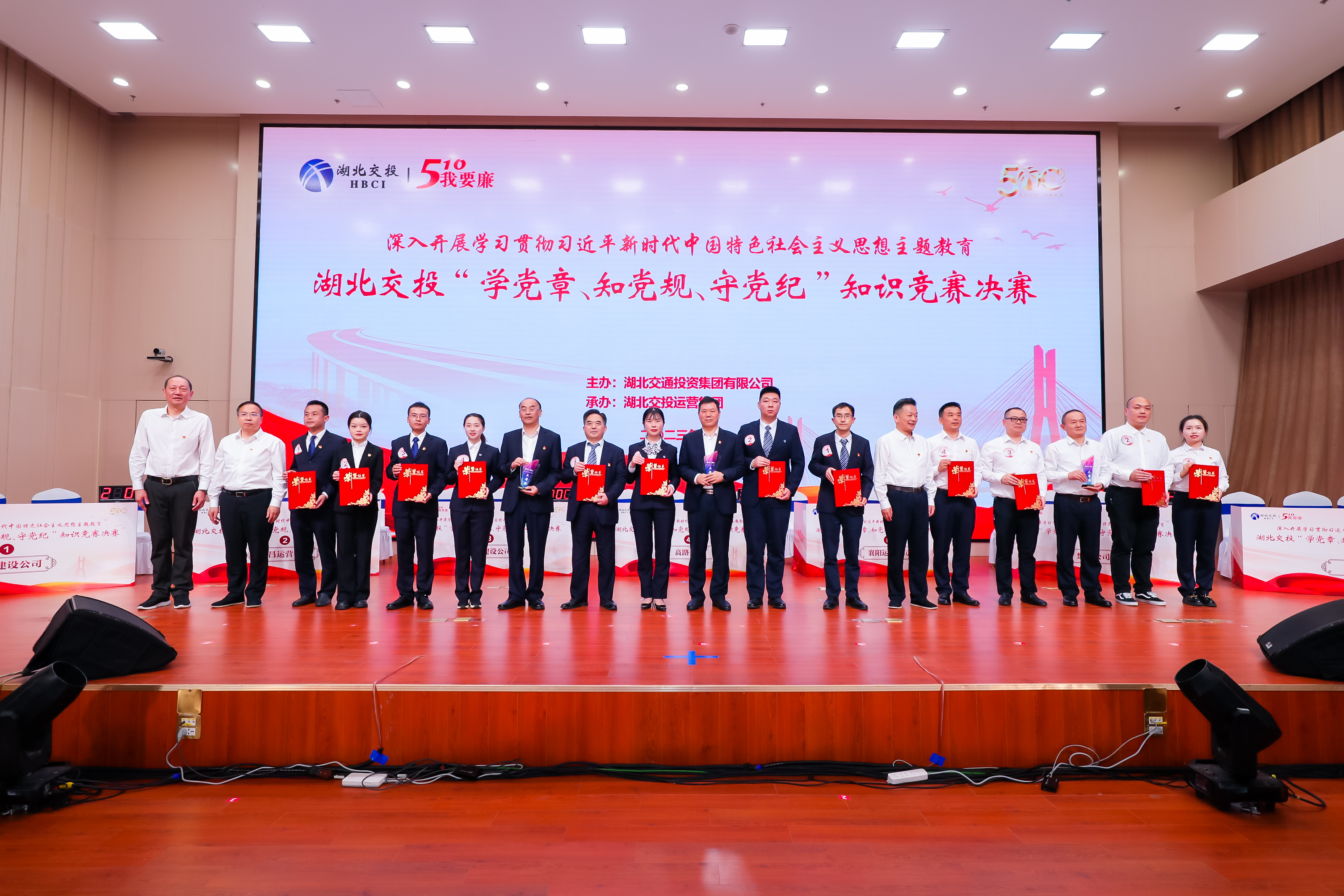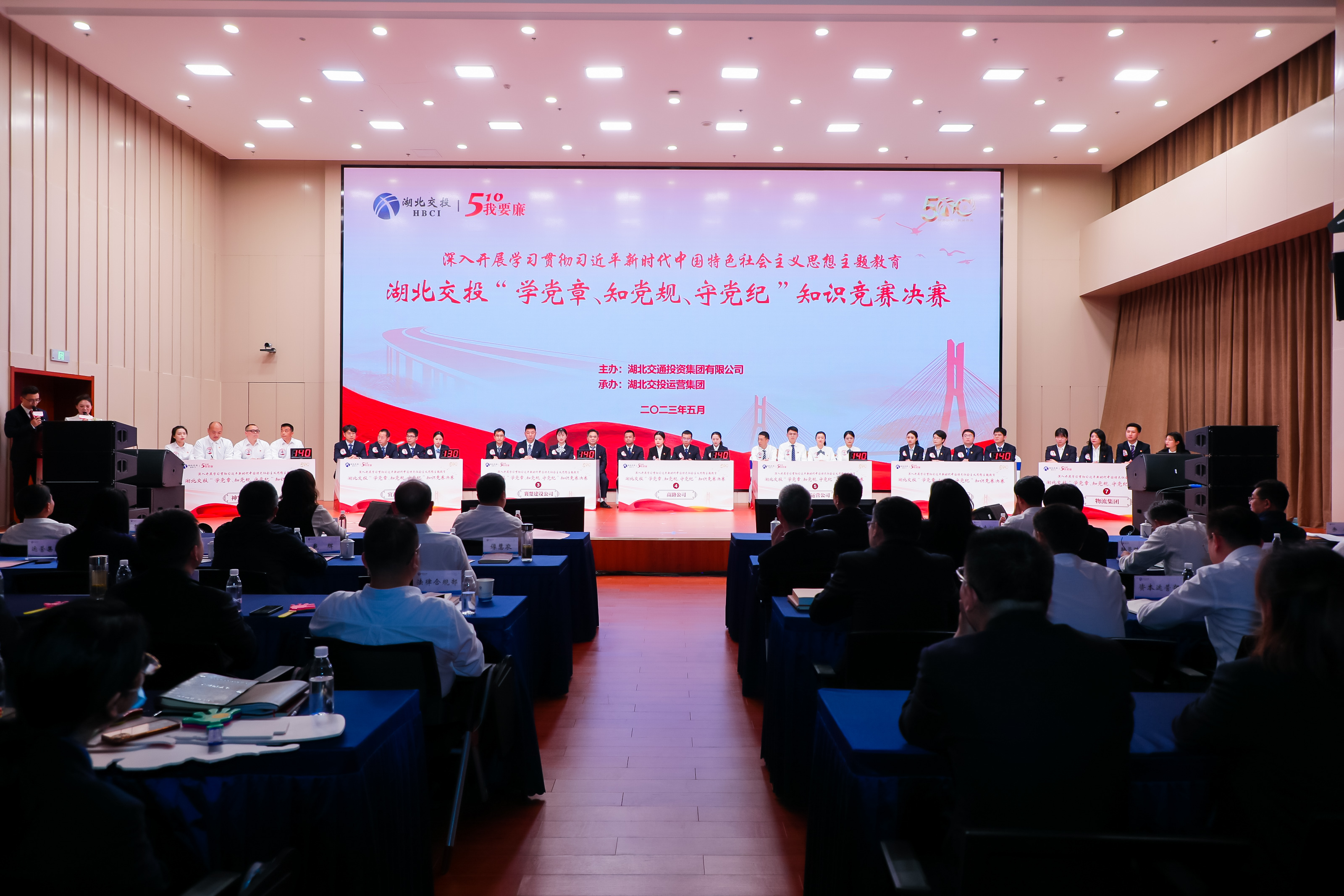 以賽促學(xué),以學(xué)促行。為深入推進(jìn)學(xué)習貫徹習近平新時(shí)代中國特色社會(huì )主義思想主題教育,進(jìn)一步鞏固檢驗黨的二十大精神學(xué)習成果,在湖北交投第11個(gè)“510·我要廉”廉潔品牌教育活動(dòng)日到來(lái)之際,一場(chǎng)別開(kāi)生面的“學(xué)黨章、知黨規、守黨紀”知識競賽決賽在集團公司總部舉行。省紀委監委督導組和省政府國資委黨建工作處相關(guān)領(lǐng)導,集團公司黨委書(shū)記、董事長(cháng)盧軍出席活動(dòng)。