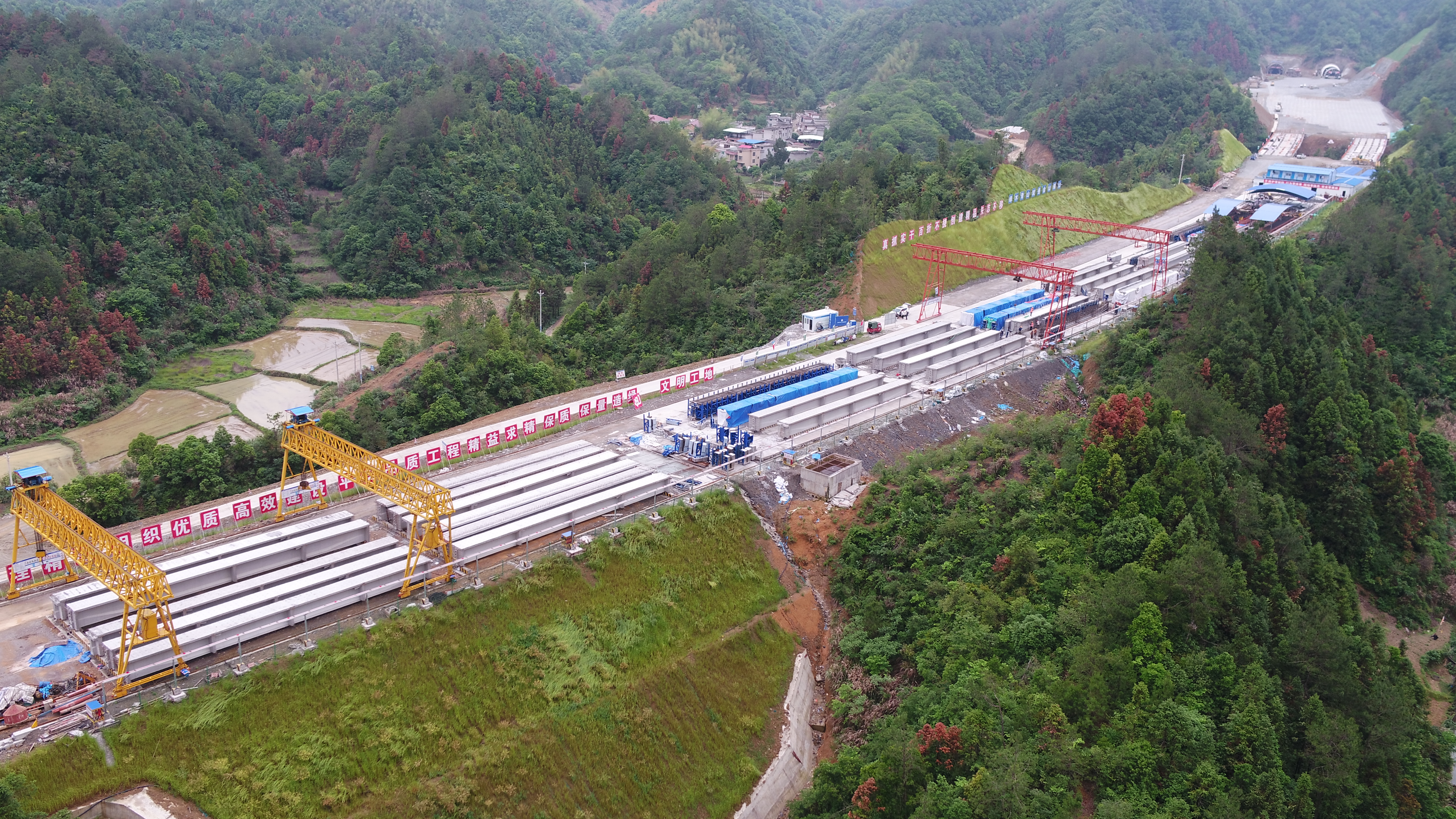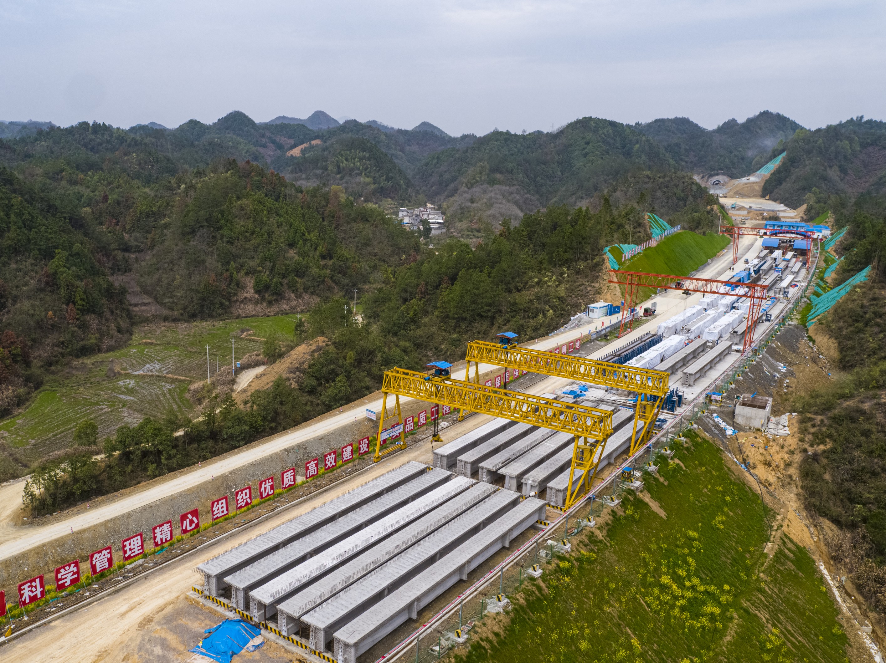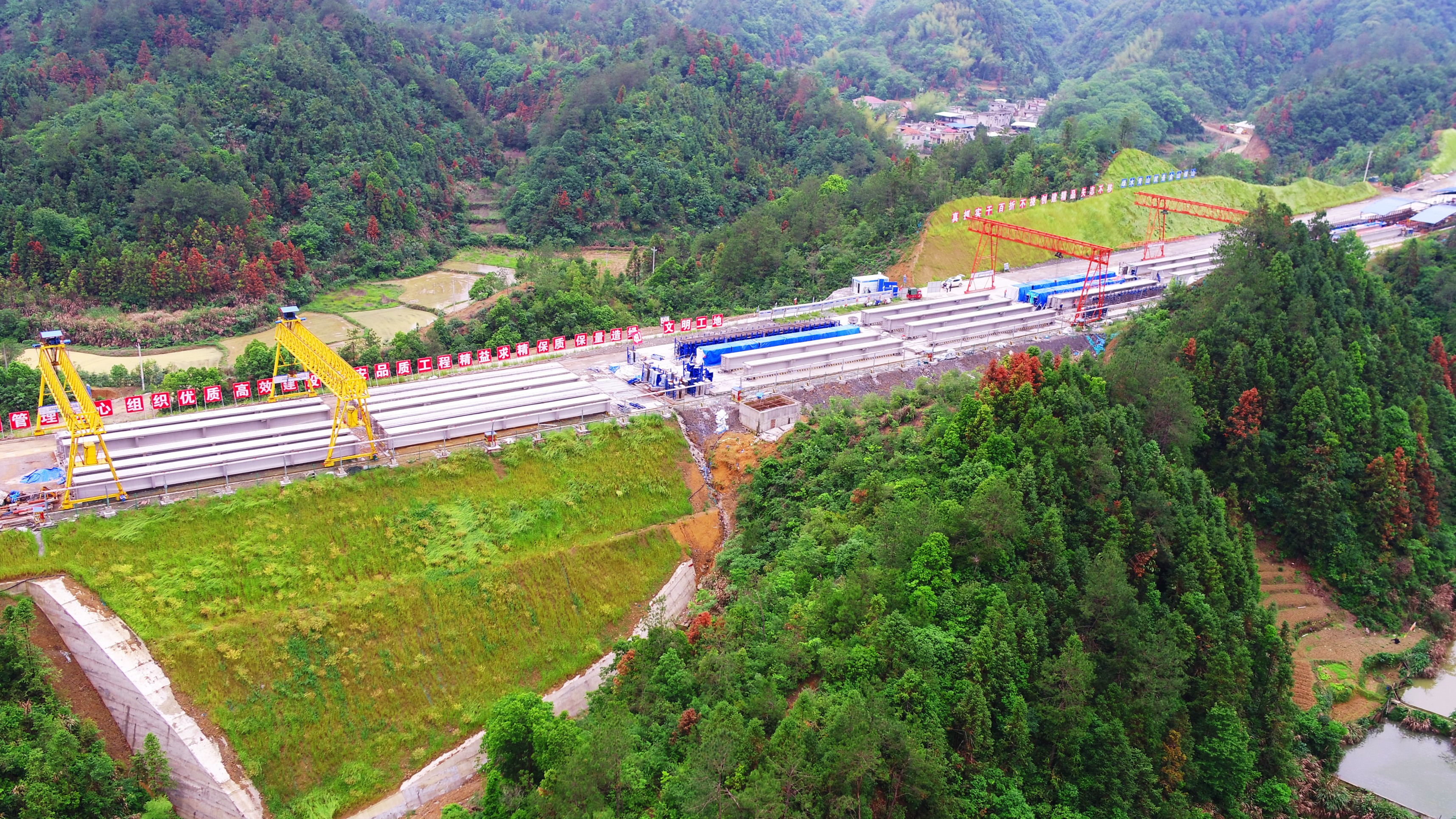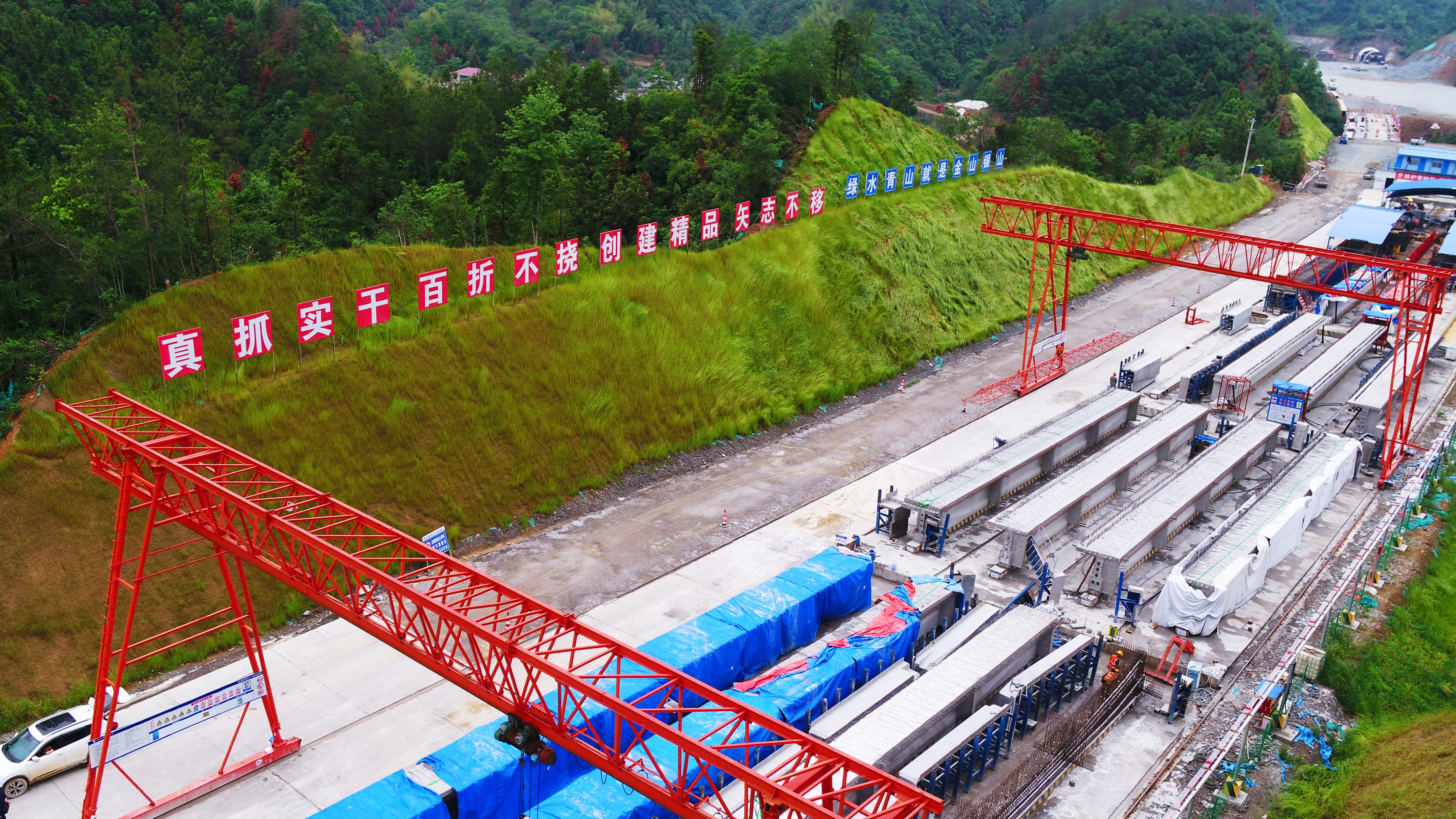 綿延不絕的幕阜山滿(mǎn)目蒼翠,正在建設中的咸九高速宛如一條美麗綠色長(cháng)廊。