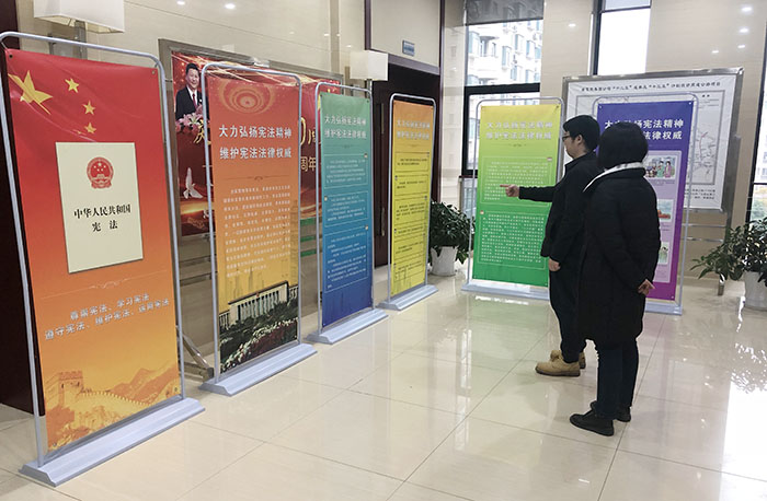干部職工觀(guān)看憲法宣傳展板