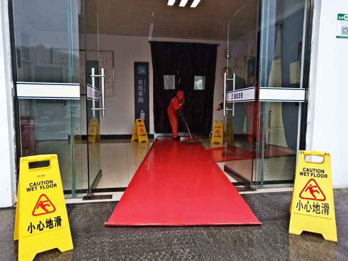 鄖西服務(wù)區公廁內放置防滑墊和防滑標識