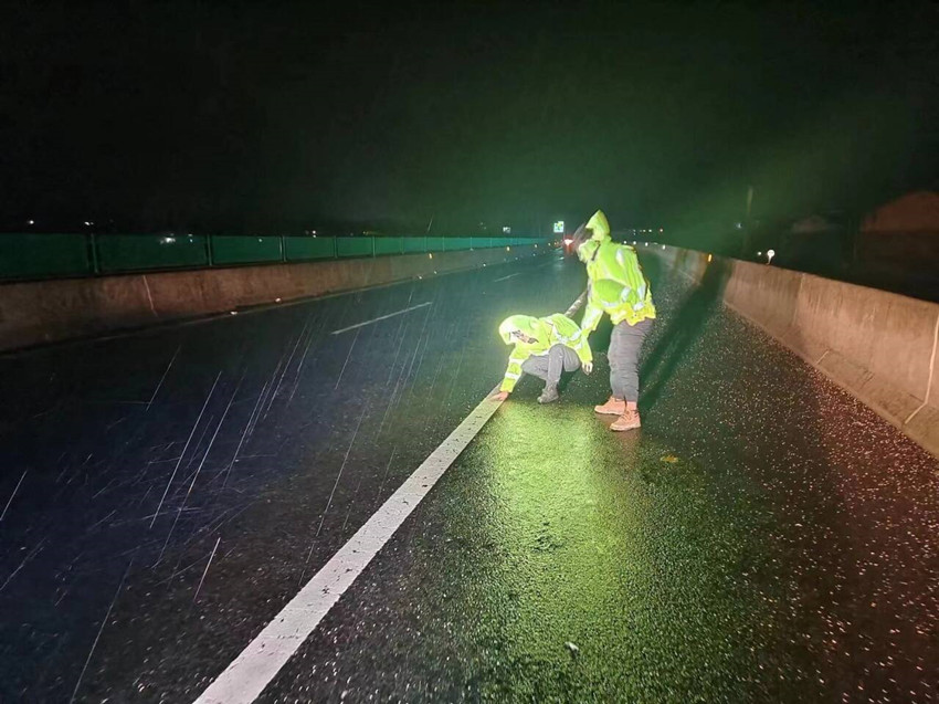 鄂東運營(yíng)公司晝夜融冰保暢通。2月21日凌晨四點(diǎn),紅安北部的天空下起凍雨,而麻城木子店省界處也開(kāi)始不斷降下雪籽。鄂東運營(yíng)公司巡檢辦的員工們迅速行動(dòng)、整夜未眠,身著(zhù)厚重的工作服,頭戴安全帽,用雙手觸摸路面查看是否結冰,穿梭在風(fēng)雪交加的公路上。第六巡檢辦陳輝亮同志說(shuō)“我們的目標只有一個(gè):確保道路暢通,保障司乘人員的行車(chē)安全?!贬槍鲇曷涞爻杀奶攸c(diǎn),堅持預先撒鹽以動(dòng)制凍,采取裝載機平推、平地機鏟雪的方式,迅速清除路面融化的積雪。2月20日夜間至21日12時(shí),累計撒布融雪劑183噸,投入應急車(chē)輛228臺、機械116臺次、應急人員542人次,全線(xiàn)路況良好,未發(fā)生大面積、長(cháng)時(shí)間、長(cháng)距離車(chē)輛滯留情況。