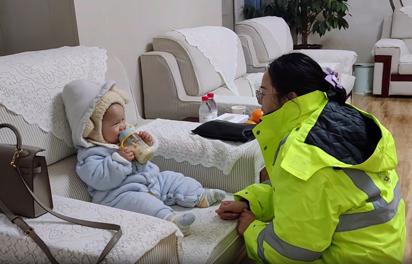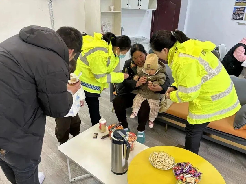 “我車(chē)壞了,需要轉運,車(chē)上還有個(gè)十個(gè)月寶寶,外面實(shí)在太冷了?!笔飷傄?jiàn)狀,趕緊將他們一家人接到管理所內取暖。