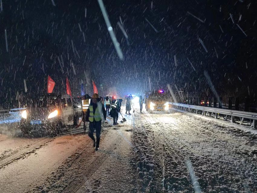 目前,湖北交投集團數十個(gè)雪豹行動(dòng)隊晝夜奮戰在一線(xiàn),為司機排憂(yōu)解難,溫暖人心。