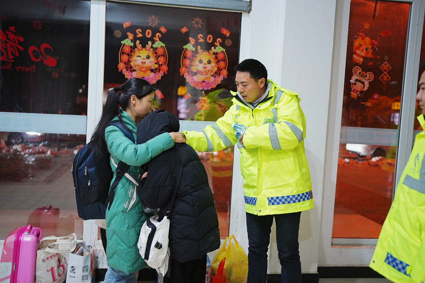 劉濤趕緊將其帶進(jìn)服務(wù)區大廳避寒,江飛撥通轄區板橋店派出所電話(huà),嚴磊忙回巡邏車(chē)上拿出儲備的泡面、小面包、純凈水,并安撫著(zhù)小朋友:“有叔叔在,別怕,我們護你周全?!?