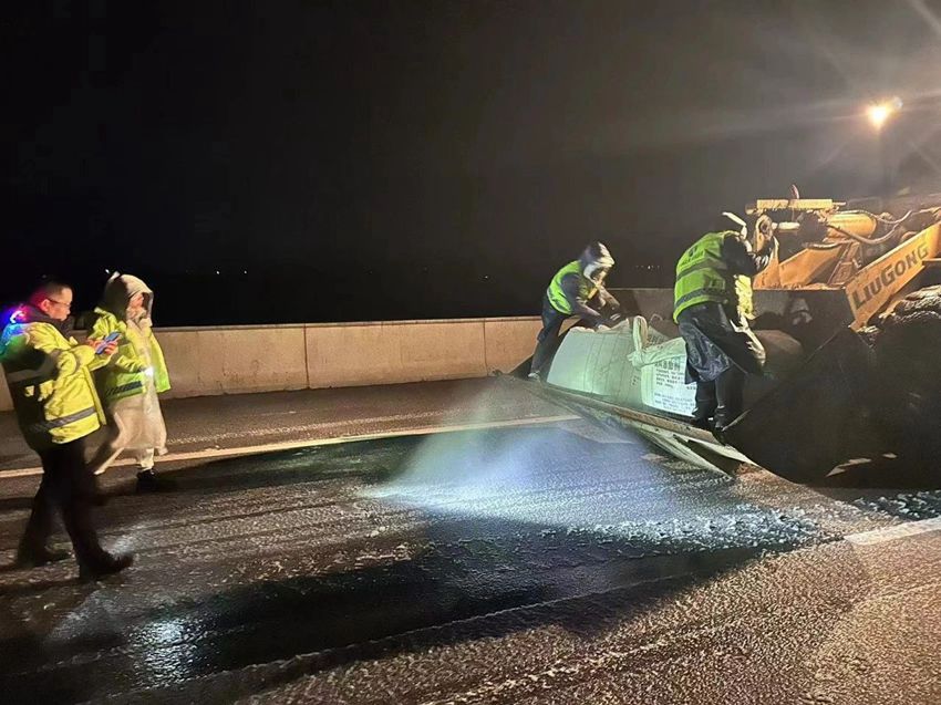 孝洪高速沉湖至應城西段,是融雪劑等應急物資的重要運輸通道。20點(diǎn)42分,由建設集團橋隧分公司66人組成的3支雪豹行動(dòng)隊,帶著(zhù)11臺裝載機、10臺保障車(chē)抵達沉湖應急點(diǎn),按照“一橋一隊,分段包?!笨傮w思路,聯(lián)合高開(kāi)公司京珠養護片區,成立6支突擊小隊,以沉湖、田二河、中州、赤壁分廠(chǎng)高架橋和漢北河特大橋、五龍河大橋6座橋梁為重點(diǎn),對孝洪高速沉湖至應城西段56公里的道路實(shí)施包保。
