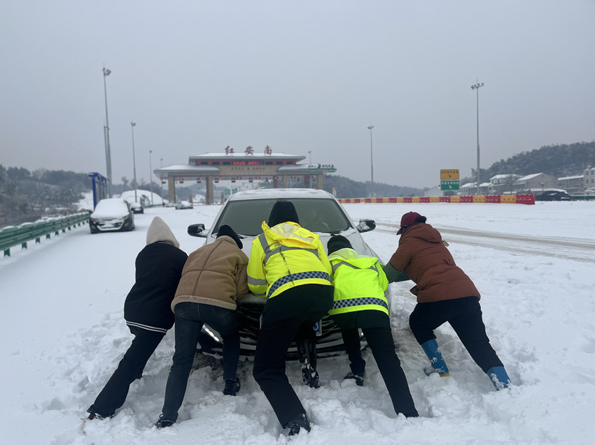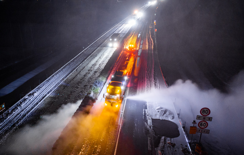 23日7時(shí)許,蘄嘉高速咸寧至大冶段路面結冰,擁堵達56公里。雪情就是命令,5支“雪豹行動(dòng)隊”拉開(kāi)了與時(shí)間賽跑、與風(fēng)雪對抗的攻堅戰役。14時(shí)30分,“吹雪大王”到位,隨著(zhù)巨大轟鳴聲,路面的冰層和積雪被高速熱流迅速卷起。23時(shí),因擁堵滯留的車(chē)輛司乘都沉沉睡著(zhù),突擊隊員頂風(fēng)冒雪,挨個(gè)提供“叫醒服務(wù)”。24日8時(shí),蘄嘉高速黃咸段雙幅四車(chē)道成功打通,滯留車(chē)輛全部安全通行。