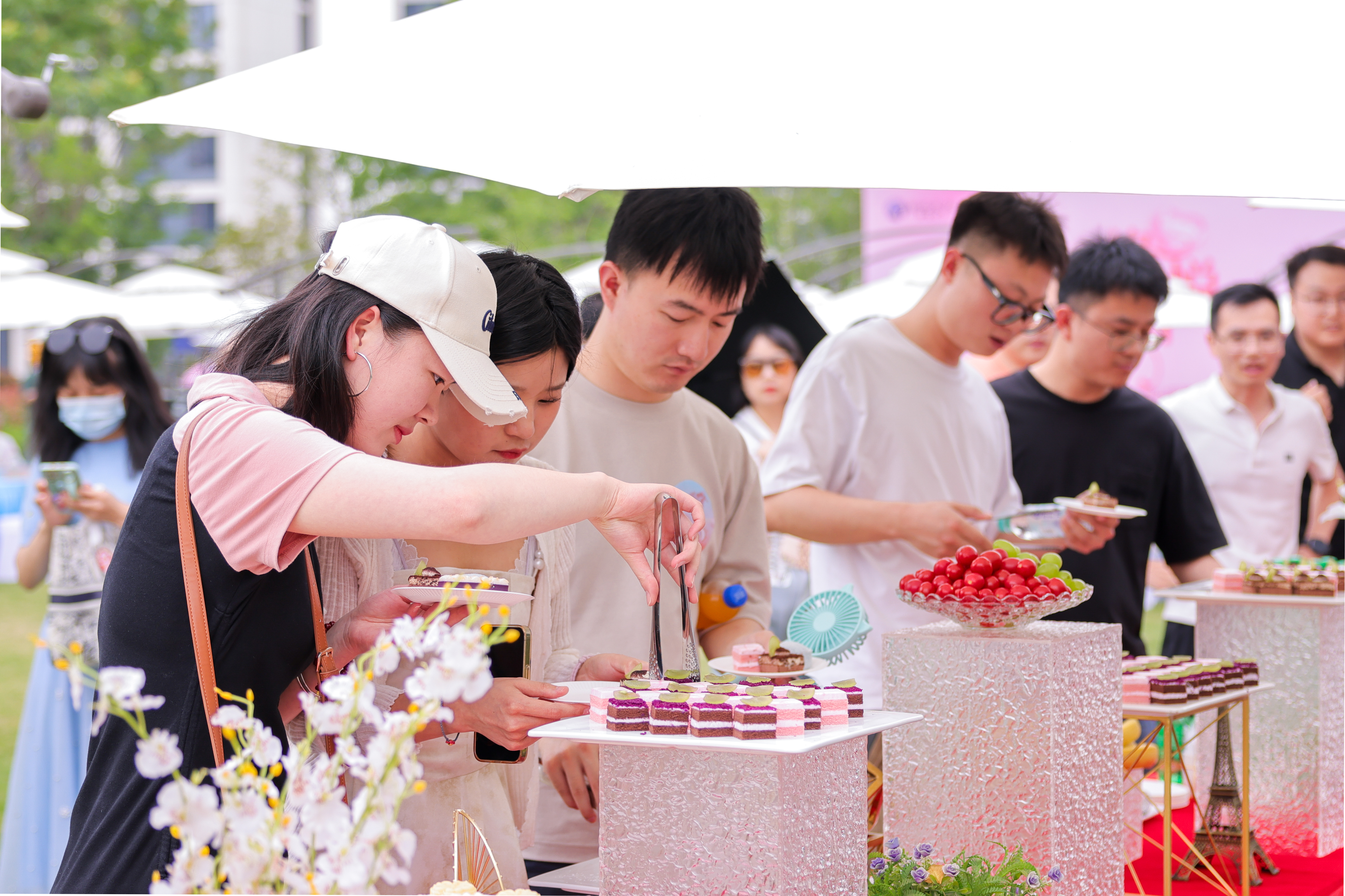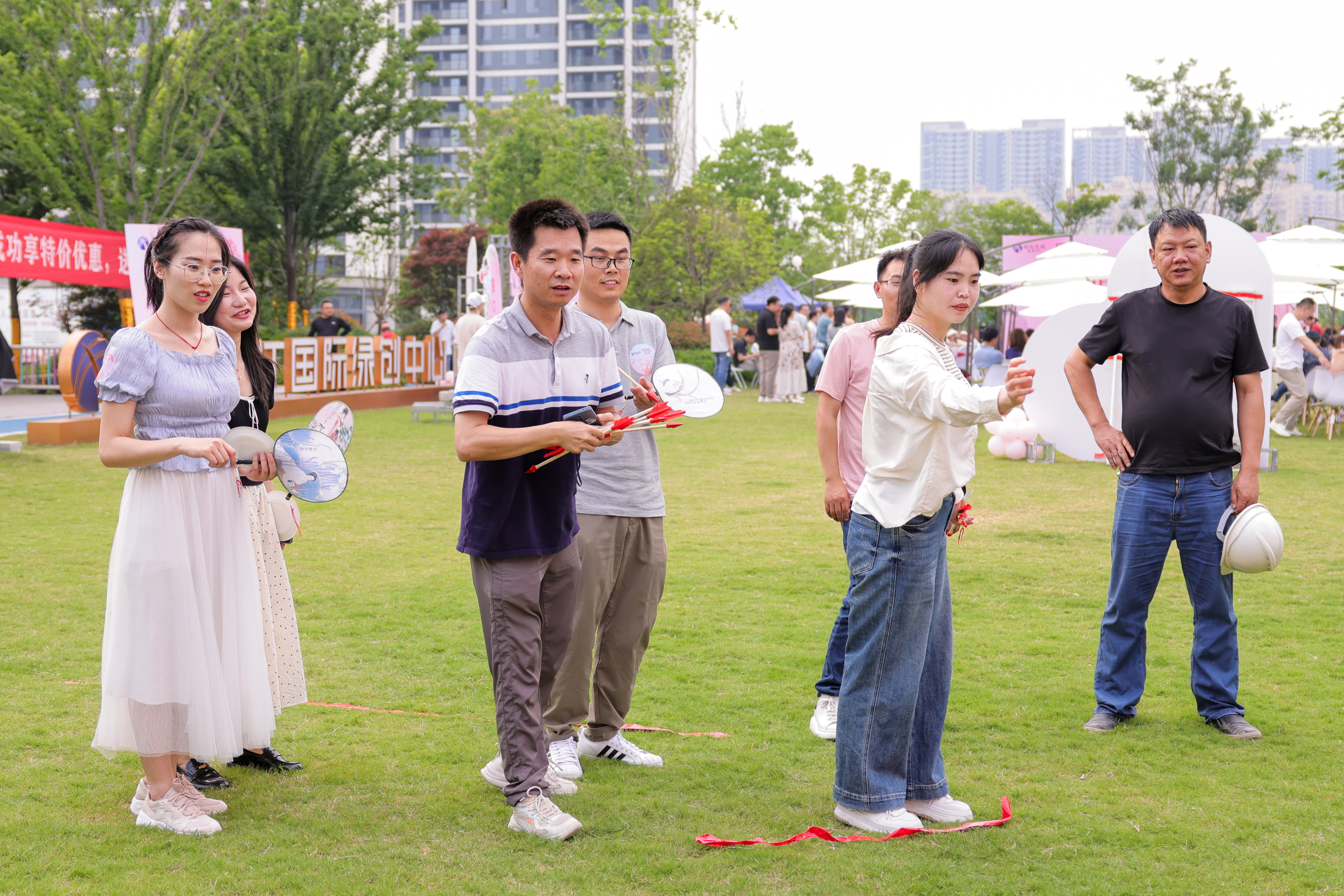 在綠草茵茵的活動(dòng)現場(chǎng),鮮花、氣球、露營(yíng)帳篷、茶點(diǎn)冷餐、唯美浪漫的打卡合影區......每個(gè)角落都沁溢著(zhù)唯美的青春與浪漫氣息?!碍h(huán)環(huán)相扣”“報紙情緣”“蒙龍撿幣”各種暖場(chǎng)和破冰互動(dòng)小游戲拉近青年距離,打破彼此的陌生和隔閡。武漢王婆現場(chǎng)說(shuō)媒、心動(dòng)告白,讓現場(chǎng)氣氛快速升溫,打開(kāi)了青年男女掩藏于內心的情感按鈕,掀起了聯(lián)誼活動(dòng)高潮。