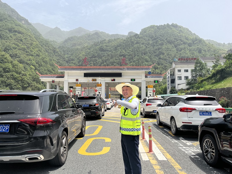 “一車(chē)一桿,大家注意安全車(chē)距,有序通行!”高嵐收費站現場(chǎng)工作人員耐心提醒著(zhù)司乘。每年7月至9月是朝天吼漂流高峰期,今年景區光影隧洞漂流迎來(lái)首漂,全國各地的游客紛紛前來(lái)感受夢(mèng)幻洞漂,體驗聲光電融合碰撞的速度與激情,高嵐收費站保暢壓力驟增,最高單日車(chē)流量突破1.1萬(wàn)輛次,為此,高嵐收費站不斷優(yōu)化疏堵保暢工作方案,加強與景區、交警路政的聯(lián)勤聯(lián)動(dòng),采取“遠端引導、中端分流、近端疏導”三級管控模式,分點(diǎn)安排專(zhuān)人疏導,全力保障車(chē)道安全暢通。